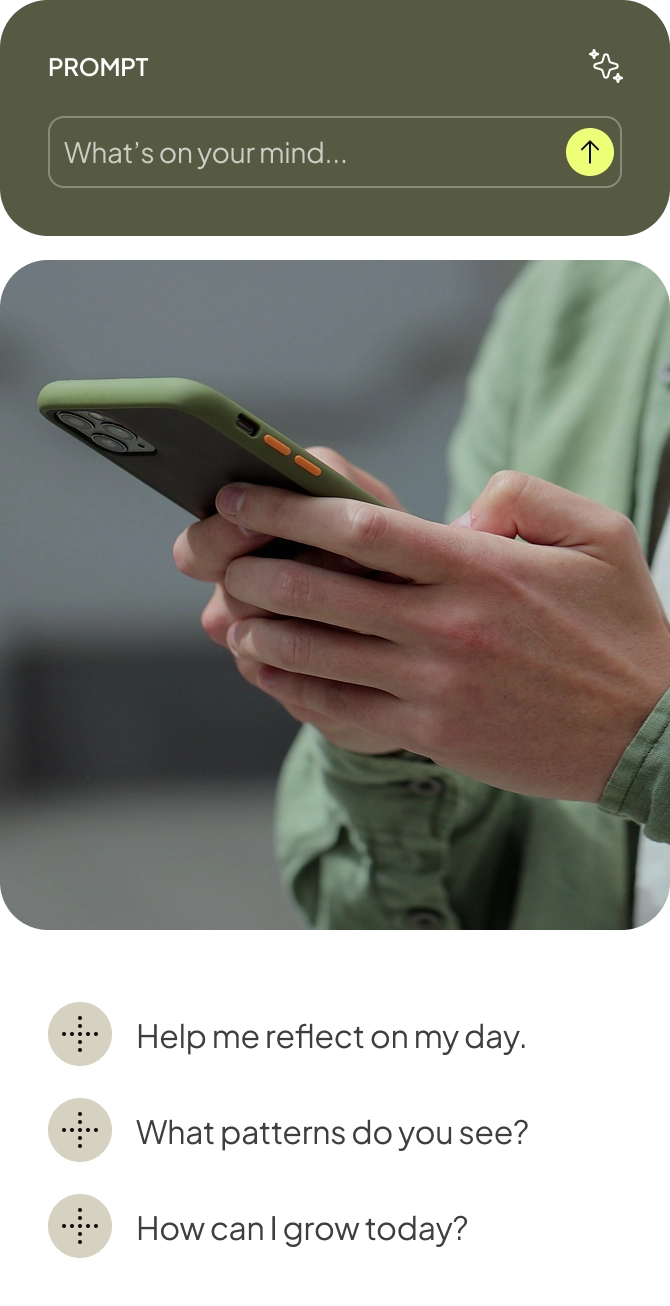 A dedicated space to explore your thoughts, reflect on your experiences, and work through what’s happening beneath the surface. MindPartner helps you go beyond simple journaling by guiding you through questions, surfacing patterns, and helping you better understand yourself over time.