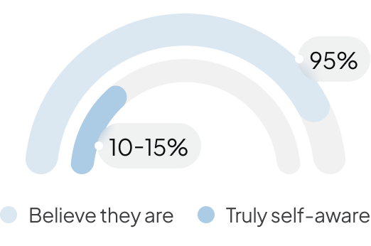 95% of people believe they’re self-aware. Only 10–15% actually are. Source: Tasha Eurich research on self-awareness)